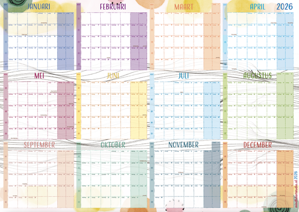 Een kalender van 2026, op een zeer groot poster formaat: 120cm x 85cm! Zo heb je veel schrijfruimte voor je planning.